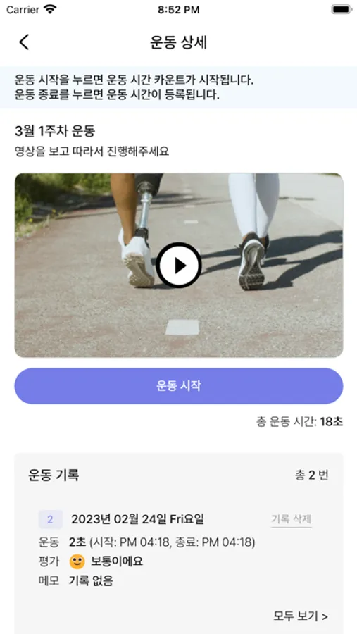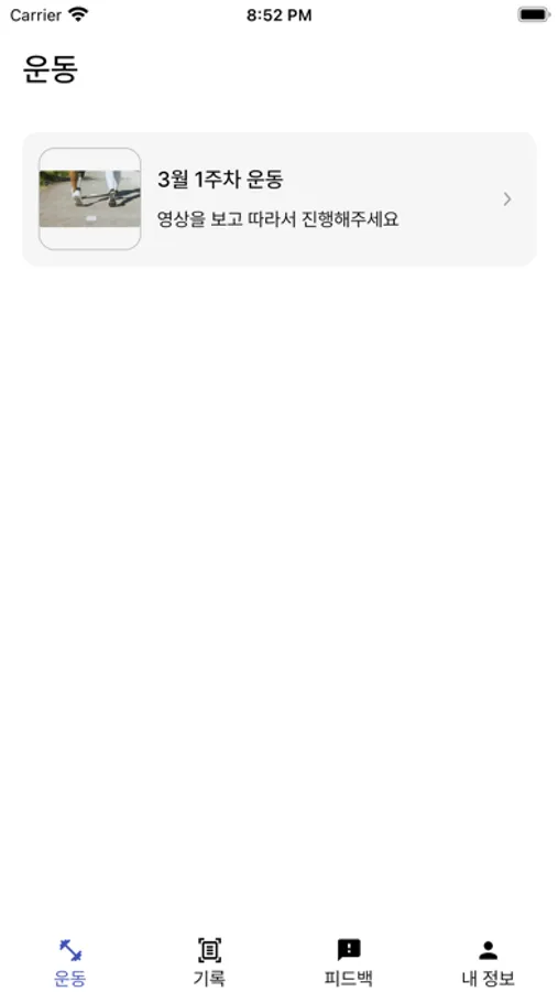 운동 탭에서 운동 동영상을 보며 운동 기록을 남겨 보세요.