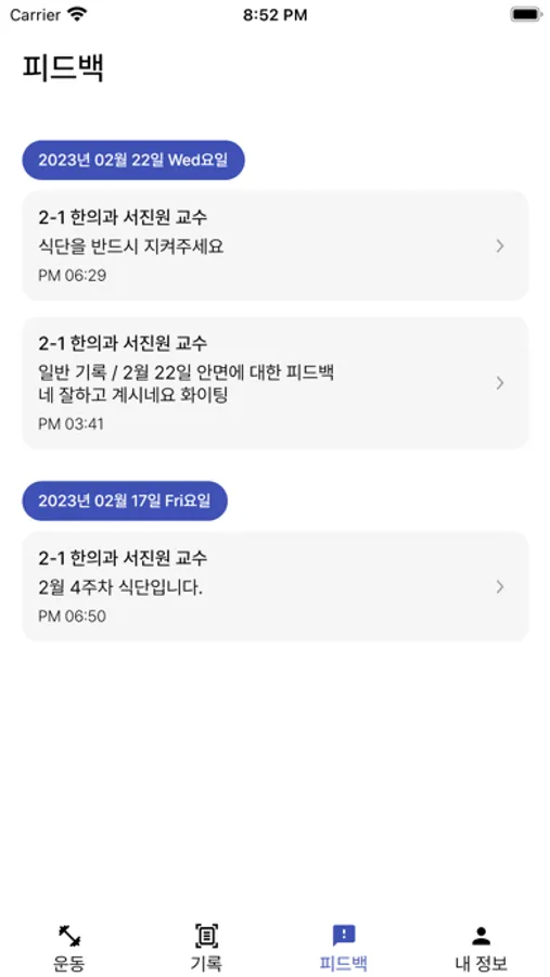 피드백 탭에서 의사 선생님의 피드백을 모아 볼 수 있어요.