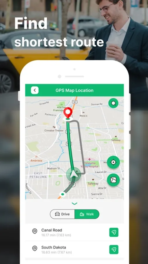 GPS Navigation: Road Map Route is the high performance GPS navigation app to get you where you’re going safely, reliably and enjoyably. Find distance between two location is very simple with user interface. You can choose by driving vehicle, bicycling or walking.