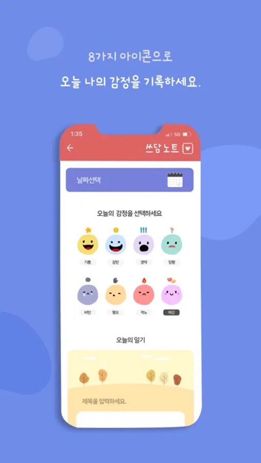 오늘의 감정을 적고, 감정 하나하나 쓰담쓰담 해 보세요.
