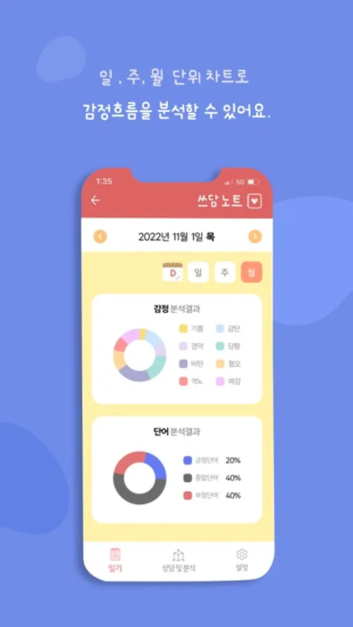 하루에 1분 자신에게 집중하고, 마음을 간단하게 기록하고 분석하는 앱