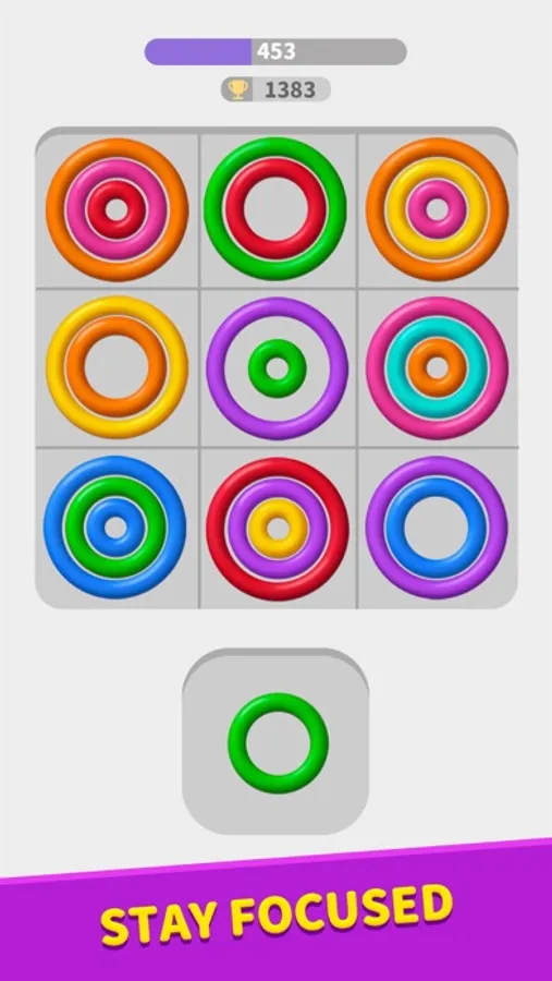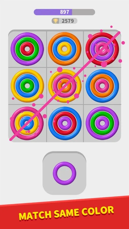 The gameplay of this matching game is very simple and innovative, but it still needs your attention to master this game. Plan every move before place the rings and try to eliminate rings as many as you can to achieve high score! The clear goals and powerful boosters can make sure you have more fun in this addictive game!