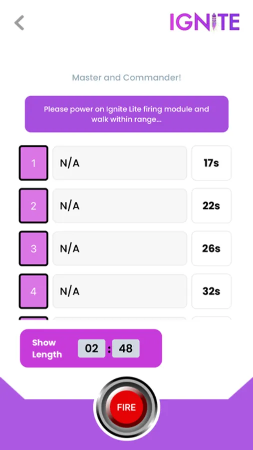 IGNITE Lite allows you to shoot fireworks from your phone. Connect up to six fireworks to the single firing module using igniters that clip onto the fuse of the fireworks. You can press buttons to manually fire, enter a 4-digit show code to fire an automated show, or design your own using the online IGNITE Show Designer.