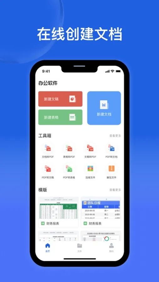 文档手机版为用户提供移动办公功能,可以编辑分享文档、表格、文稿,也可以对文件进行解压和压缩,文档和PDF的转换等。