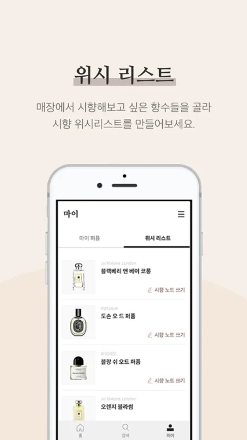 위시리스트에 추가하여 시향하고 싶은 향수를 쉽게 모아보세요.