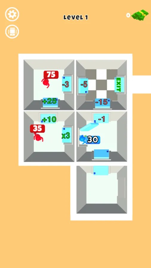 Try to escape the floor with the biggest number! But be careful your enemies can and will diminish your number to the ground! Try to avoid them but if you do make sure you can win!