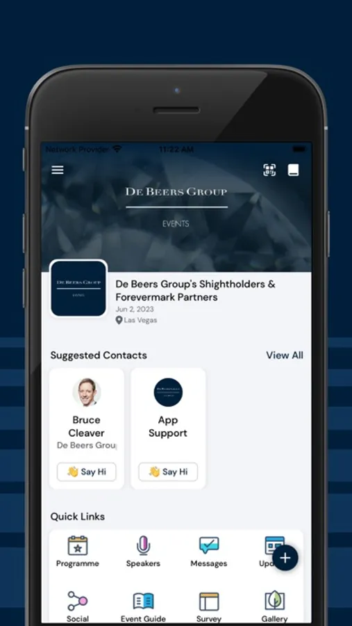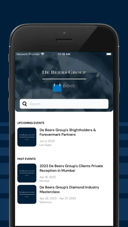 Welcome to the De Beers Group Events app. This app will provide you with access to De Beers Group events that we will host exclusively for you throughout the year.
