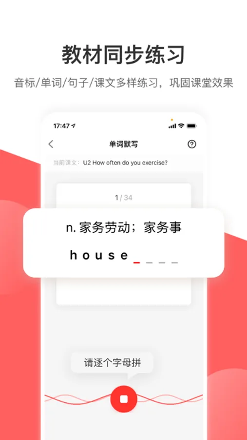 1. 同步练习:音标学习、单词跟读、句子跟读、课文朗读等多种同步练习,高效巩固课堂内容。