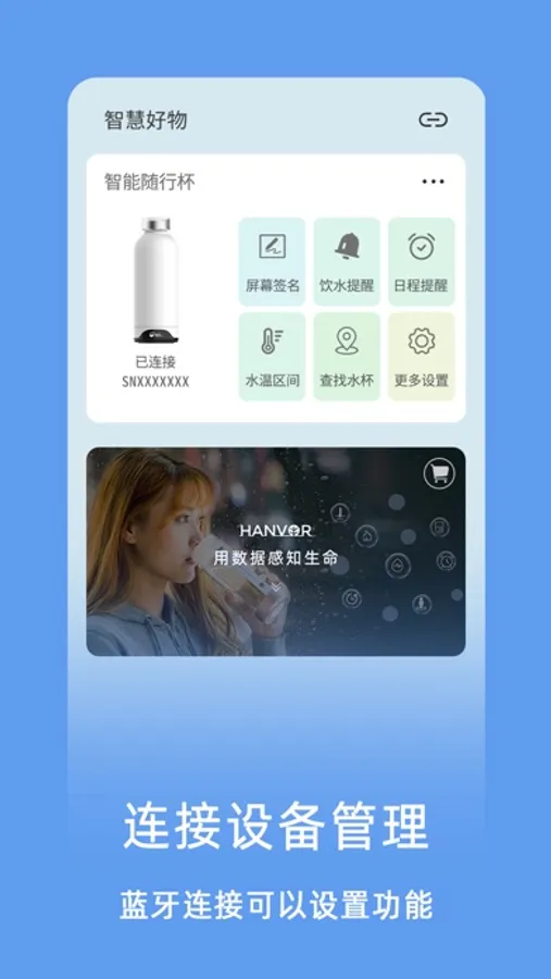 Drink-Tacker是一款智能随行杯APP,可以å跟踪您的喝水情况并提醒您多喝水,同时通过蓝牙将数据同步到此应用程序,以便您可以查看您的进度。