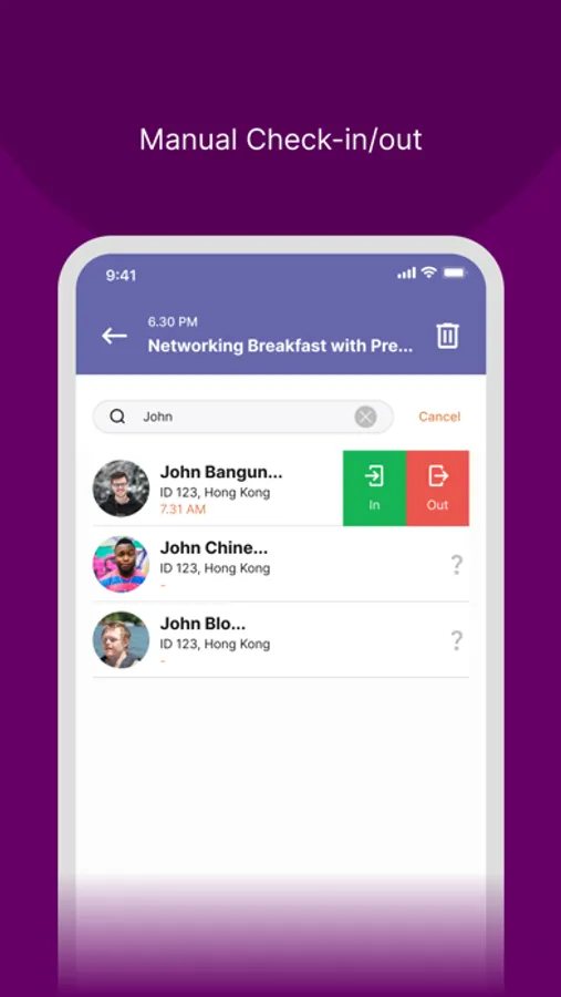 - Check-in with Event ID (search with a registered event-id and check-in)