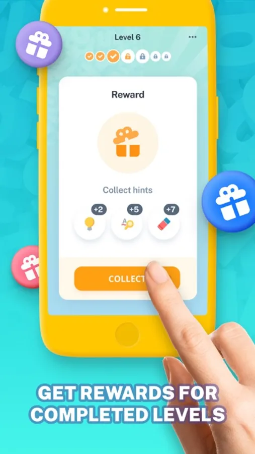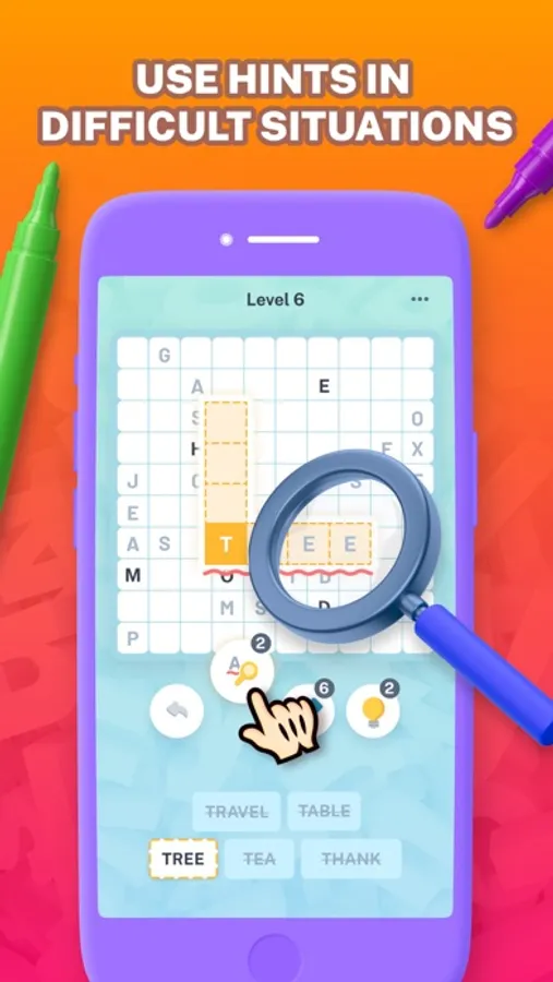 - Each word puzzle game comes with a hint to make the fun word hunt easier.