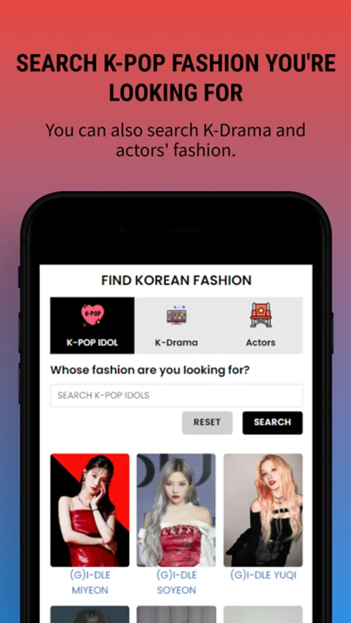 - Search for your favorite Korean star's fashion.