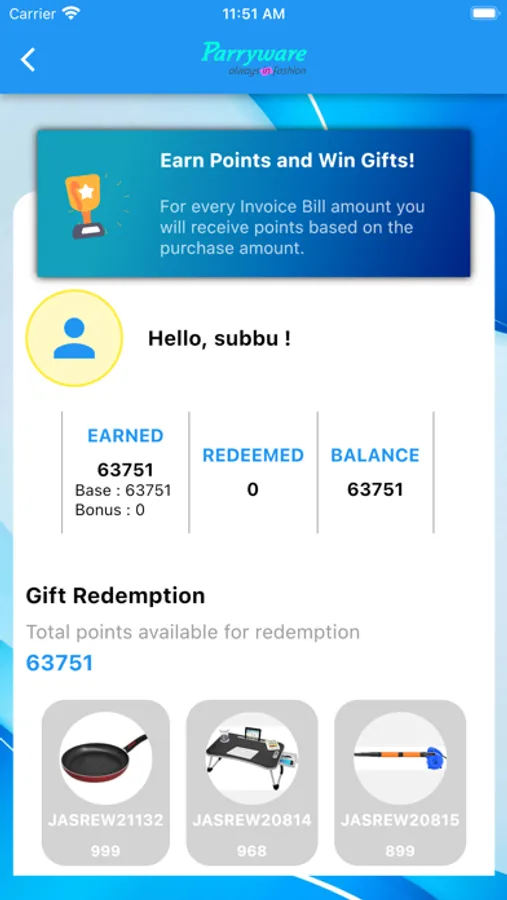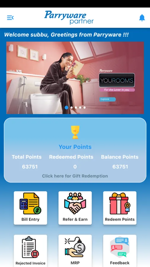 Parryware Partner is an exclusive application for retailers, Parryware Partner connects Retailers directly with the Parryware World. Retailers can upload their bills with our Utsav/Umang/Jeyam options.