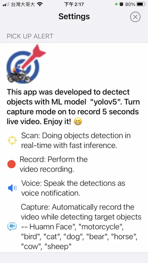 This app was developed to detect objects with ML model "yolov5". Turn capture mode on to record live video. Enjoy it!