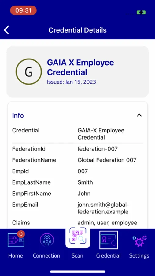 GXFS PCM provides all necessary components for the self-sovereign administration of the digital identity of a principal. The GXFS Personal Credential Manager enables a natural person to act as a principal of an organization within the SSI-based ecosystem or any other in a privacy-preserving, trustful and secure way. This comprises the following main functionalities: