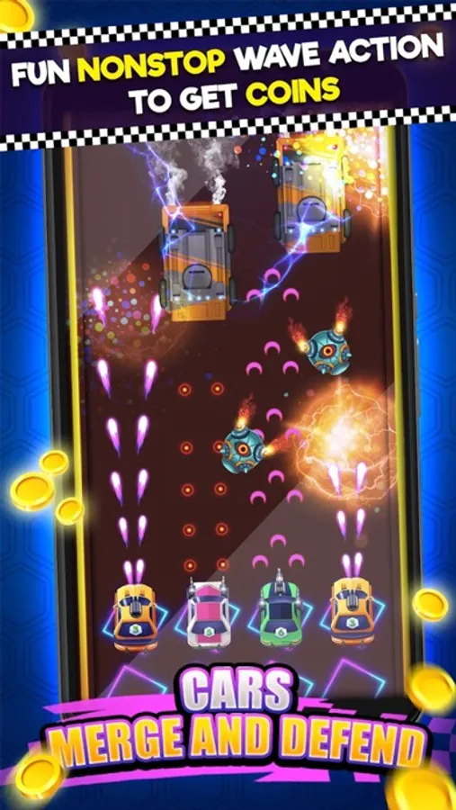 Prepare to battle wave upon wave of relentless enemies as you skilfully merge and upgrade the defences of your cars.