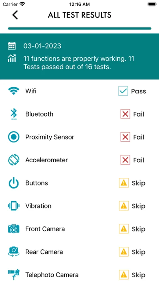 TS Testing app provides a most important used device checklist to help identify basic functionality, requires manual testing of the device, and asks for input from the user.
