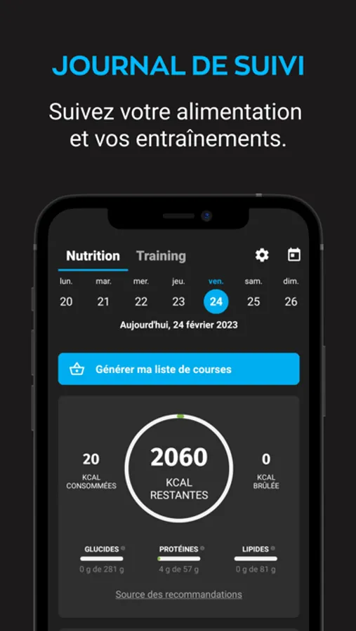 moyen et long terme (évolution du poids, de l’IMC, calories/glucides/lipides/macronutriments/protéines consommés) permettez à Gymbulk de vous suivre et challengez-vous pour continuer vos efforts.