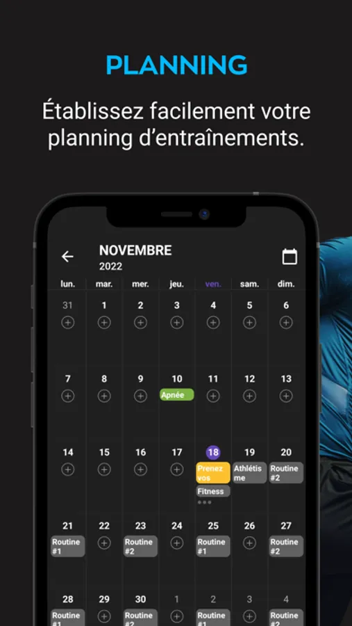 Dans votre planning vous pourrez ajouter vous-même les programmes sportifs et nutritionnels.