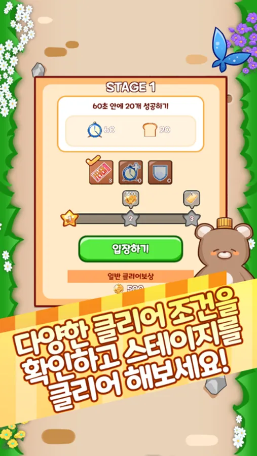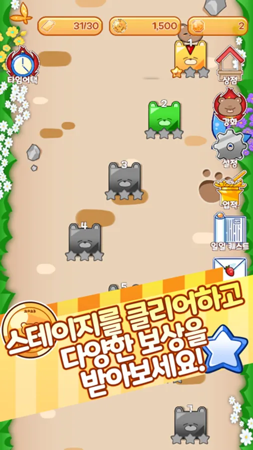 - 스테이지를 돌파하여 곰곰이를 도와주세요!