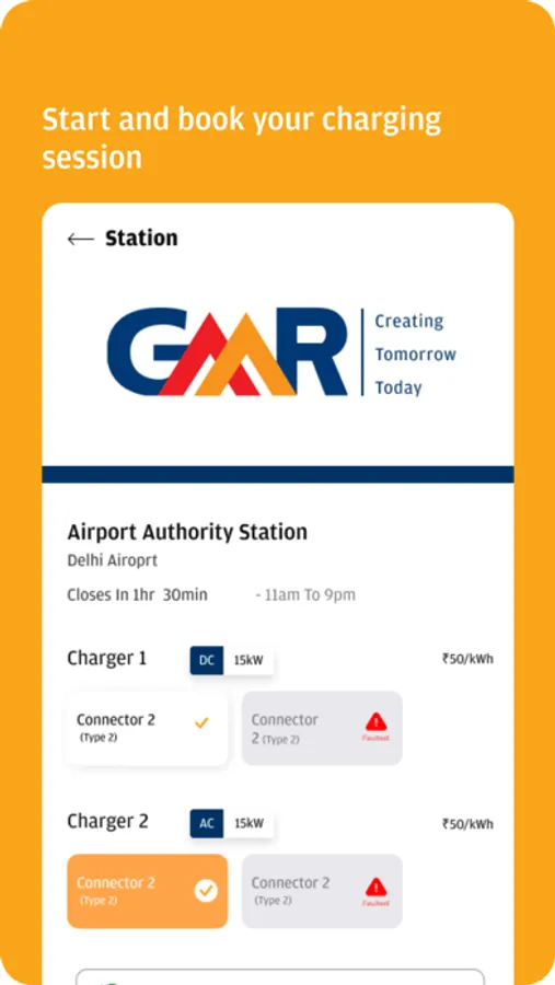 Enjoy a seamless charging experience with the GMR Green EV Charging App, best paired with our chargers located along the highways, at popular destinations, and at POls within the city. Not only that, the GMR Green EV Charging App already works with most 3rd Party Chargers, installed across India.