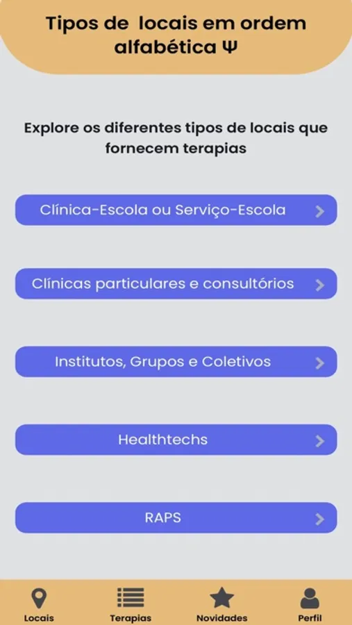Além disso, o aplicativo possui uma listagem de tipos locais onde pode ser atendido para realizar terapia, afinal outra questão enorme é onde fazer. Considerando situações econômicas diversas, o aplicativo também faz listagens onde pode ser atendido no setor público, em clínicas escola e mais de 80 locais na cidade de São Paulo onde o atendimento se dá a preço social!
