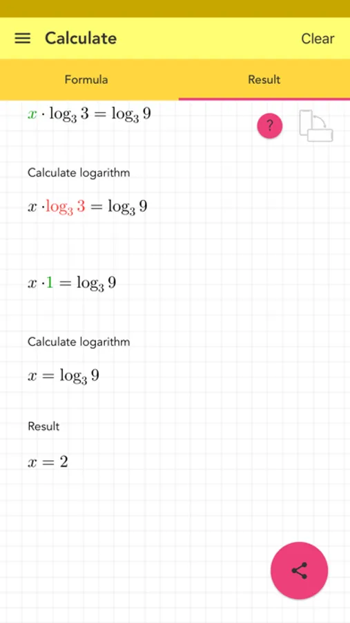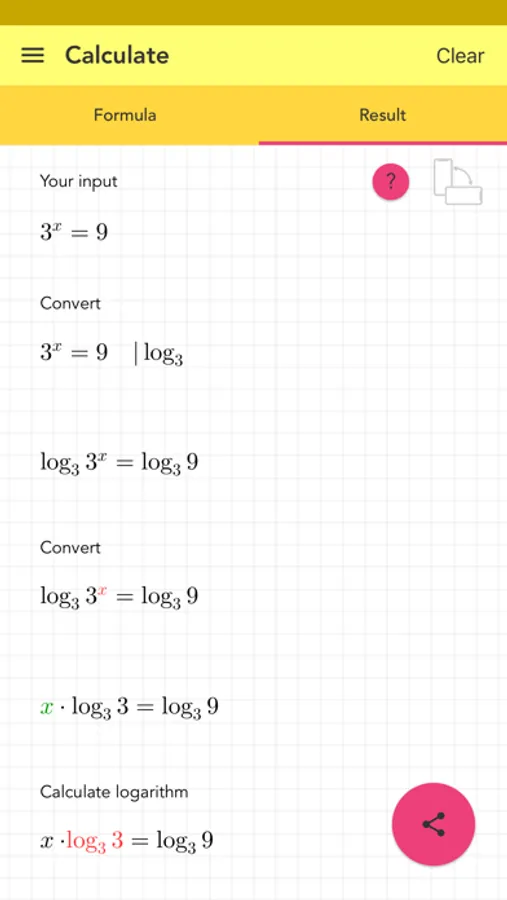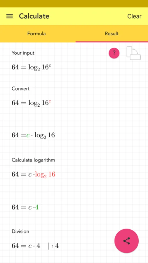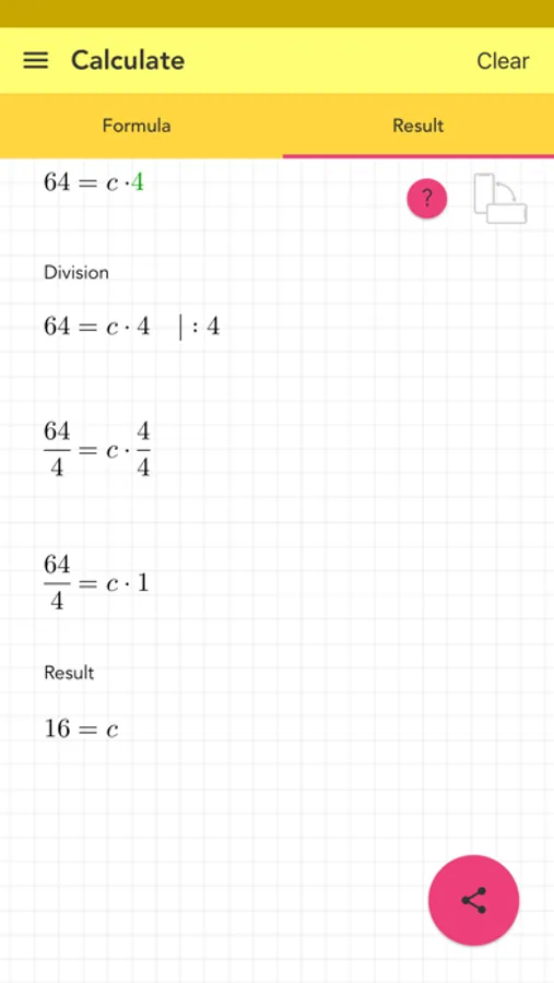 Decimals, fractions and negative values are supported. The solution is shown step by step. All calculations are stored in the history. The final solution can be shared.