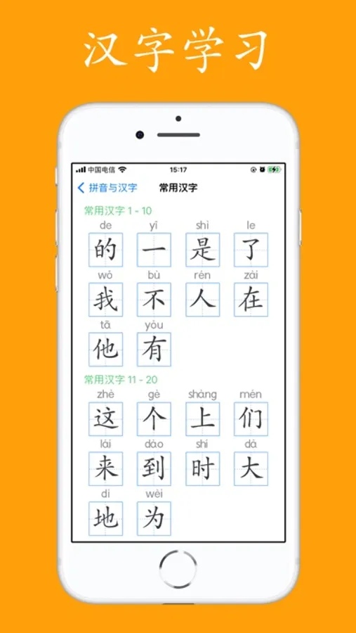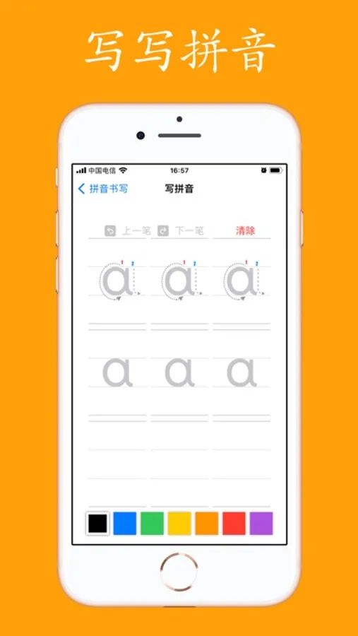 学习每个拼音字母的书写规范,在手机屏幕上自由锻炼书写。