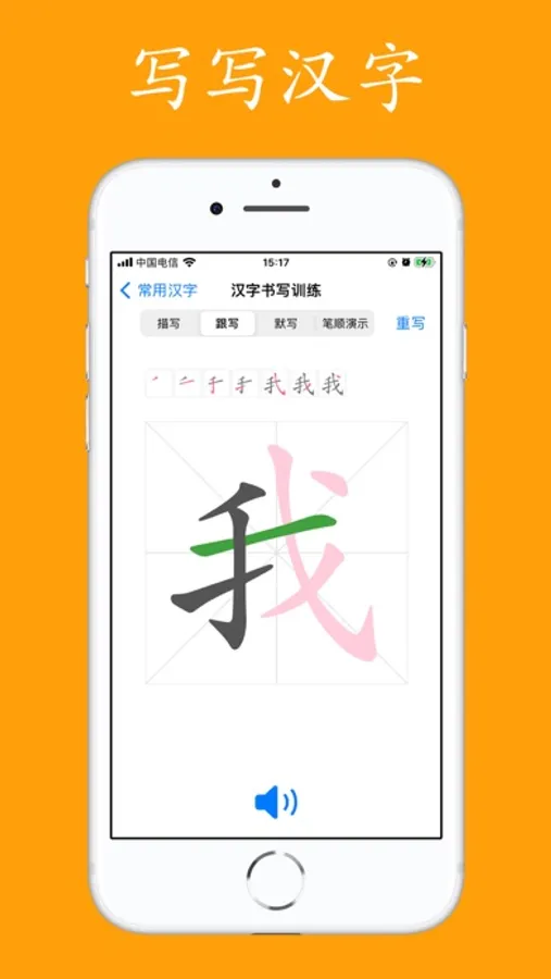 学习书写常用汉字,笔顺拆解演示,可以描红,可以对照书写,可以默写。