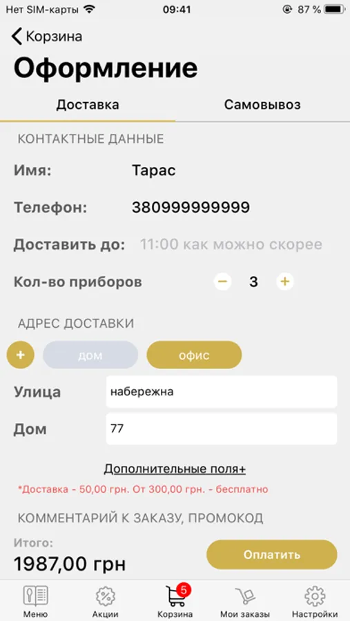 • встановити бажаний час доставки замовлення за вказаною адресою;