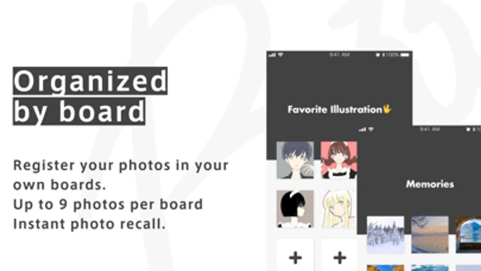 We have prepared 3 boards that can store 3x3, 9 photos in total.