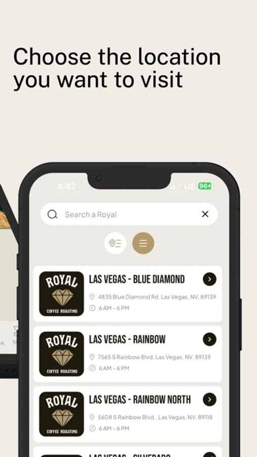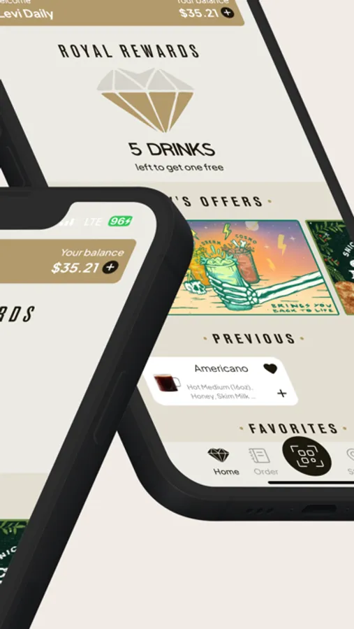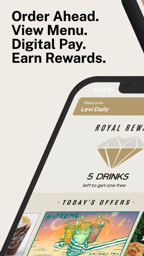 Welcome to the Royal Coffee Roasting mobile app! With this app, you can easily place orders for pickup at our locations in Las Vegas, Salt Lake City, and Medford, OR. Our app offers convenient drive-through and dine-in options for your coffee needs. Use the app to order your favorite coffee drinks and snacks directly from your phone. You can also pay for your order through the app, saving you time and hassle. As a loyal customer, you'll be able to earn rewards for free items through our app's loyalty program. Simply use the app to make your purchases and watch as your rewards add up. We hope you enjoy the convenience and rewards of using the Royal Coffee Roasting mobile app!