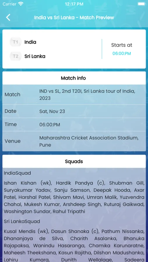 If you are a cricket fan this app best suits you. You can get all Cricket updates by installing this app. We used easier UI so that users can easily operate this app. We notify you through Push Notification before every match.
