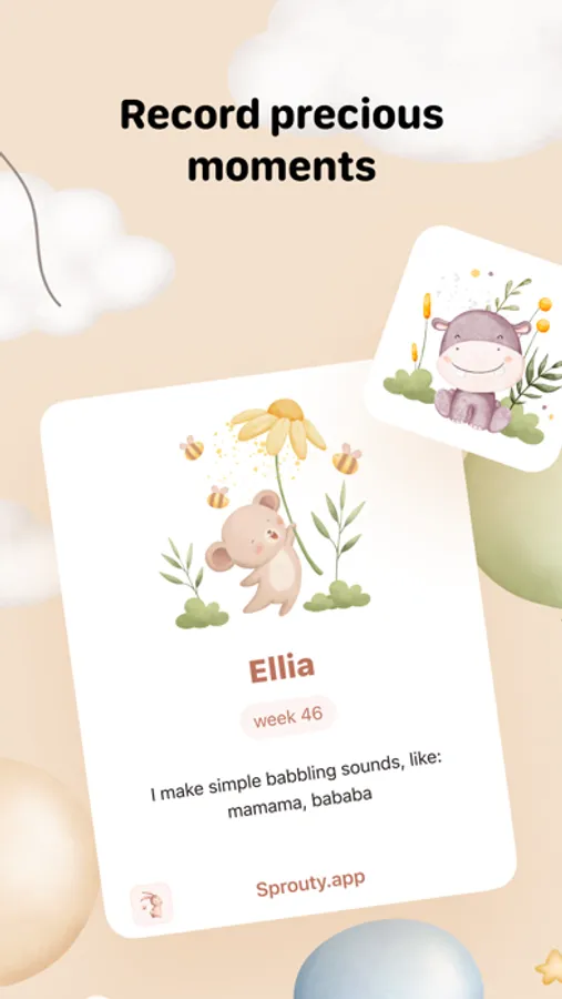 Your little one’s first smile, their first tooth, the momentous first step – record these lovely memories not just in your heart. Log them in the app to create a cute video and share it on social media and messengers with family and friends.