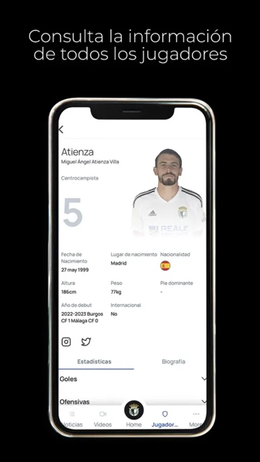 Get the latest news about Burgos CF, watch the videos, check the events calendar, classification and see the results as they happen. See the player statistics, find out who the top goalscorer is for Burgos CF and compare all the stats. Don’t miss anything from our social media with the only official application of Burgos CF.