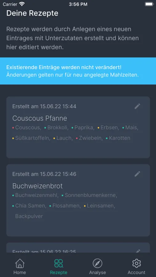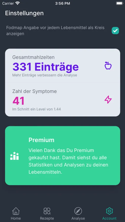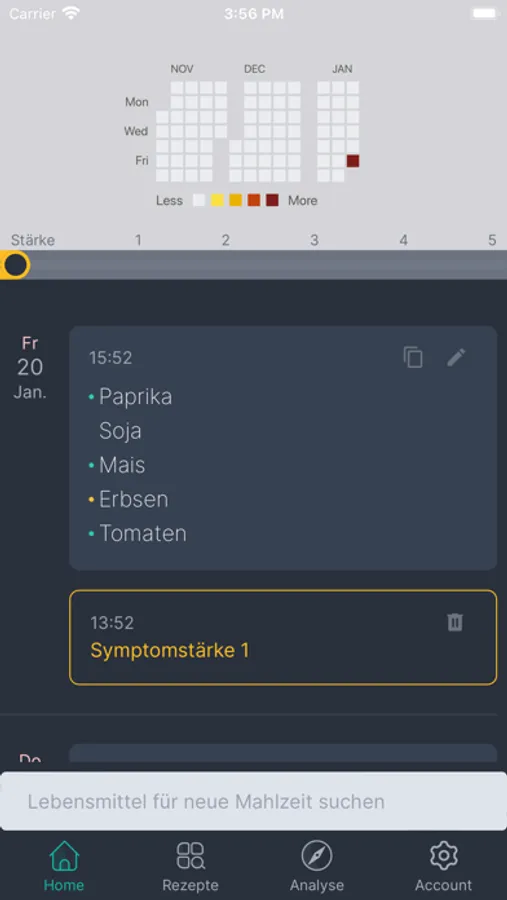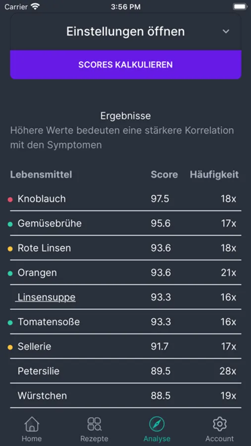 Extremely simple food tracking helps you to find out which foods cause discomfort. The consumed foods can be entered quickly, without having to enter cumbersome quantities or the exact names first. Based on the complaints entered (on a scale of 1-5), an analysis can draw conclusions about which food causes the complaints and to what extent. Over time, very precise correlations can be established. Disclaimer: Of course Foodolyst does not replace a medical diagnosis nor do the results represent a diagnosis in the medical sense. Please consult a doctor before making any decision!