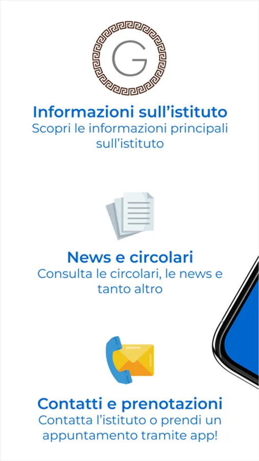 Scopri l'app del Liceo Classico Galluppi. Potrai visualizzare tutte le informazioni e i contatti dell'istituto, consultare i contenuti, ricevere notifiche push in base al tuo ruolo e ai tuoi interessi, accedere allo sportello digitale e prenotare un appuntamento con la segreteria o la presidenza.