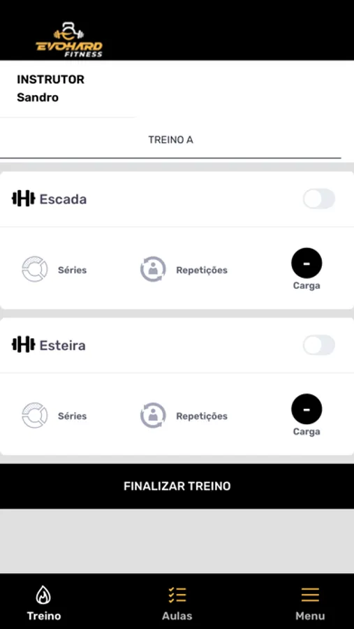 - Ficha de treino completa na tela do celular;