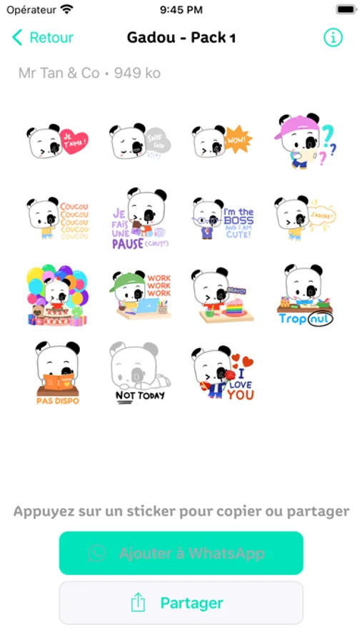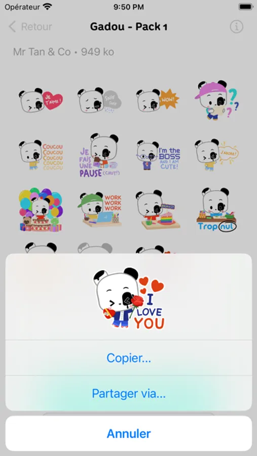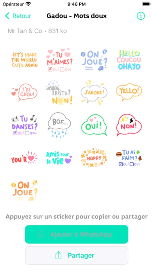 - Mots doux : 17 stickers de mots doux à envoyer à tes amis.