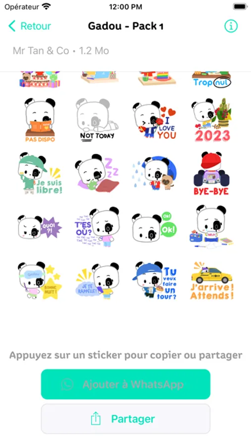 Les packs sont également enregistrables pour une utilisation sur WhatsApp.