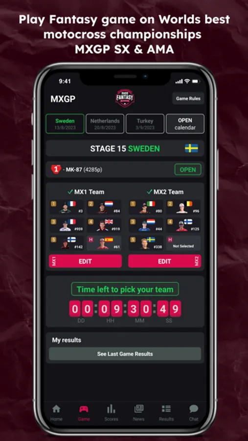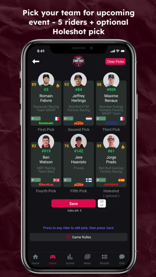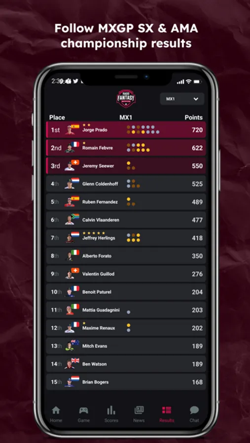 Get ready to take your love for motocross to the next level with our latest app! In addition to providing comprehensive rider statistics and analysis, the app also offers a thrilling fantasy game that allows users to compete against each other. Each week, users will predict the winners of upcoming races, earning points for every correct prediction. With each prediction, you'll rise up the leaderboard, competing against other users to become the ultimate motocross champion.