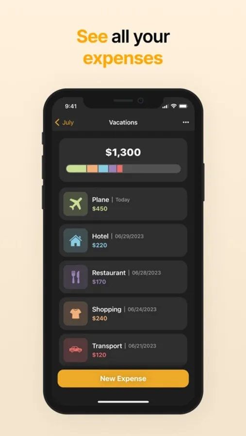 * Add and customize your expenses: name, amount, date, icon, color