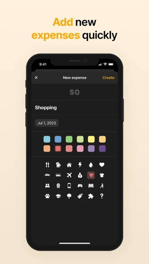 * Personalize the expense by selecting an icon and color