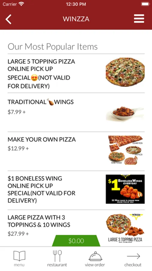 Order online from Winzza. Using our streamlined app you can order quickly with confidence. Full customize your delivery or take-out orders and order again with ease.