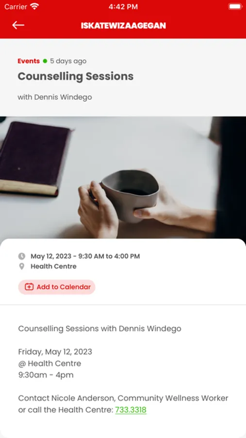 - View personalized feed supplied by the Band Office in a chronological order or by category: