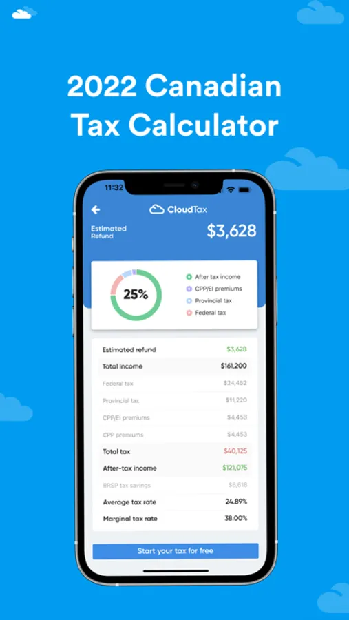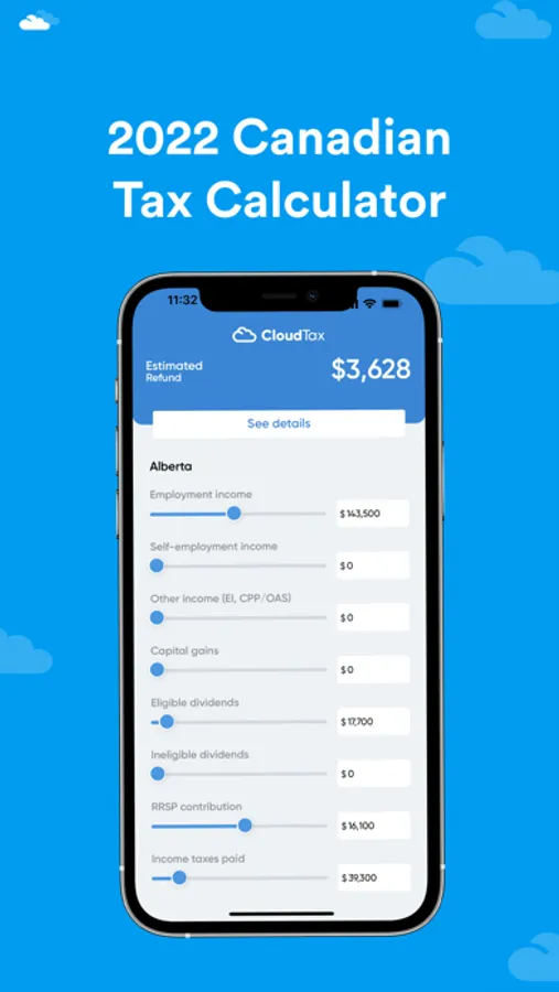 CloudTax's Canadian Income Tax Calculator mobile app is the premier tax calculation tool for Canadians. With easy-to-use functionality, the app provides intuitive, comprehensive tax calculations based on income from salaries, wages, self-employment, pensions and other sources. The app also provides users with comprehensive tax optimization analysis, showing how making RRSP contributions can help to reduce income tax payable and increase their return. The app is designed to be used by people of all income levels and is the go-to solution for any Canadian looking to maximize their tax return.