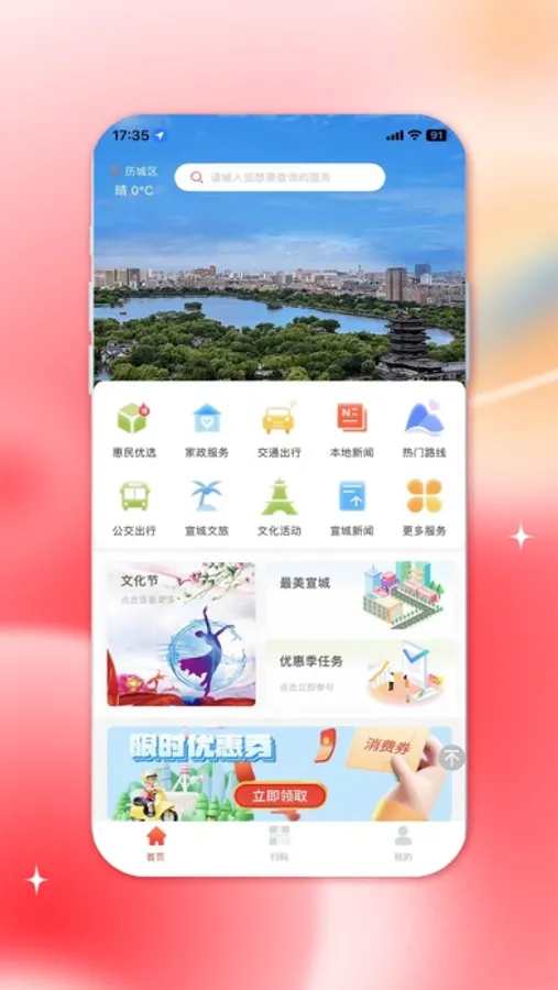 我的宣城实现“掌上办”更智慧更便民,多维度,超广度生活服务场景搭建,切实服务民生,优化营商环境,及时响应企业诉求,汇集场景数据,提升城市信息化服务水平。功能模块包含防疫手册,惠民优选,本地新闻,智慧人社,公交出行,金融超市,旅游年卡,家政服务,我的宣城是一款城市智慧运营、数字化服务类型的APP软件。