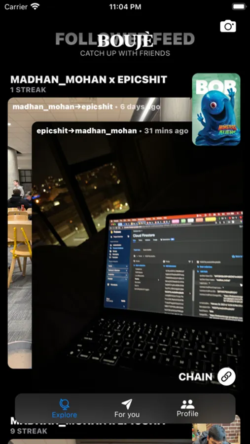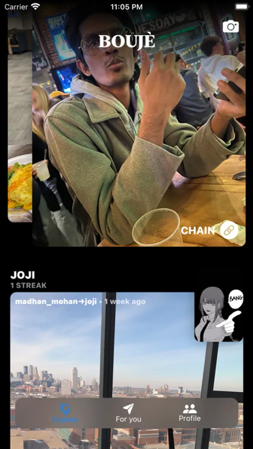 2) Chain Posting: Start a chain post by clicking a picture for your friend. You and other friends can then collaborate and chain more pictures to that post, forming a chain or sequence of memories! We built this to capture large events and trips you encounter in your life. Fun Party Nights, Long Roadtrips, Vacation Retreats, or professional events like Business Conferences or Tech Conventions. Capture them all effortlessly with our chaining feature.