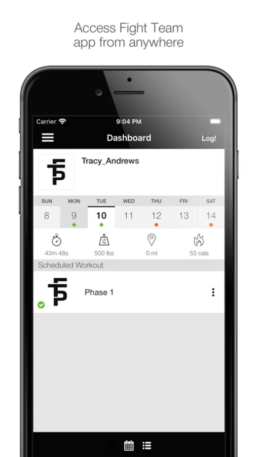 Log your Fight Team workouts from anywhere with the Fight Team workout logging app! View your logged workouts, see upcoming scheduled workouts, and book appointments inside the app. Track your progress and get the most out of your Fight Team workouts!