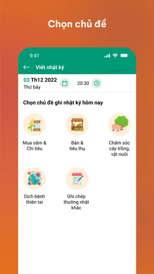 Ứng dụng cung cấp công cụ cho bà con nông dân tham gia mô hình: Tài chính tự quản và Nhật ký nông hộ.